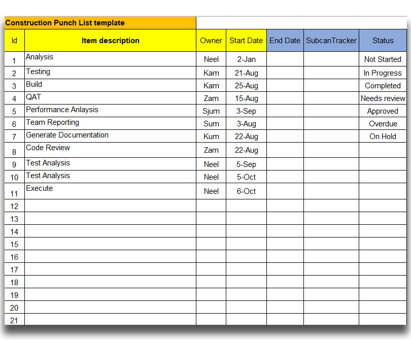 A Construction Punch List Template helps track incomplete or corrective tasks before project handover. It ensures all defects, repairs, and final adjustments are documented and resolved efficiently. This template enhances communication between contractors, clients, and teams, guaranteeing quality standards are met. A punch list streamlines project closeout for a smooth, successful construction completion.