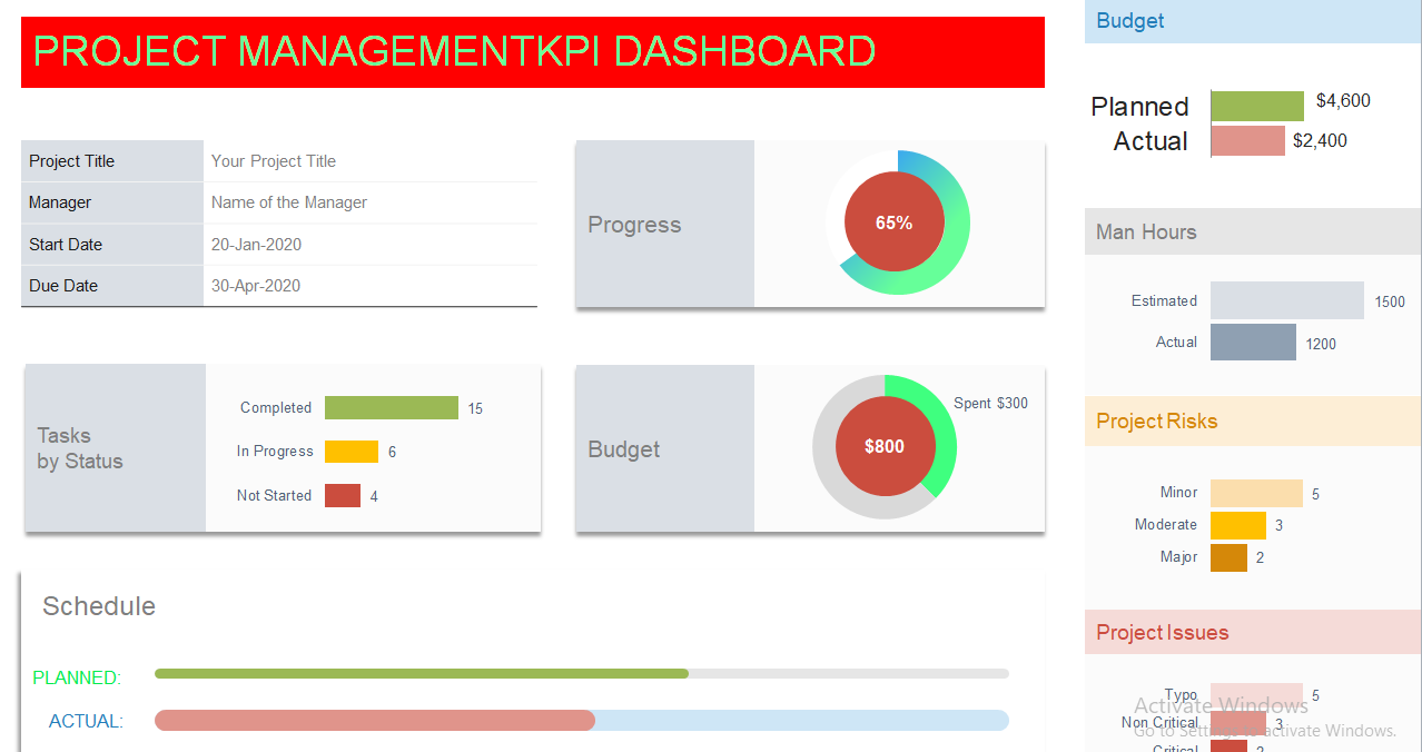 - Project Management KPI Dashboard Excel Template