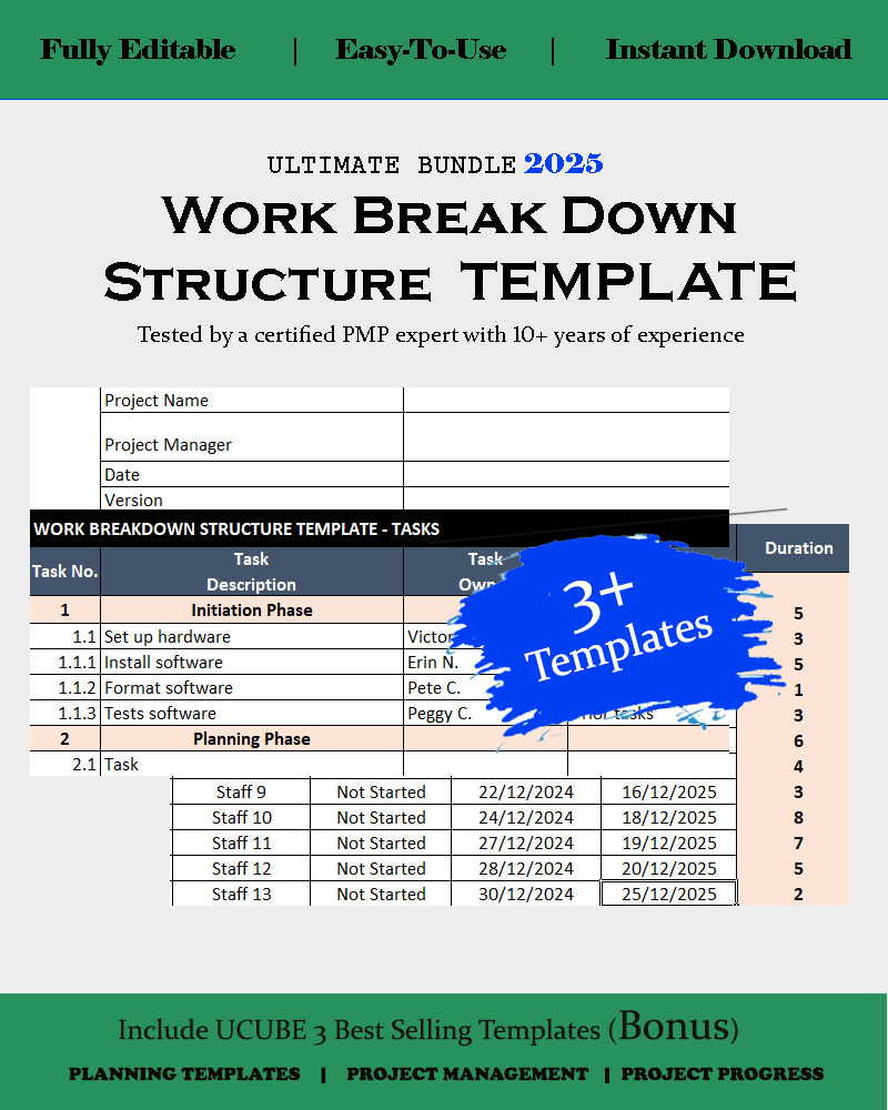 - You can get step-by-step help by using a work breakdown structure template making tasks easily manageable.