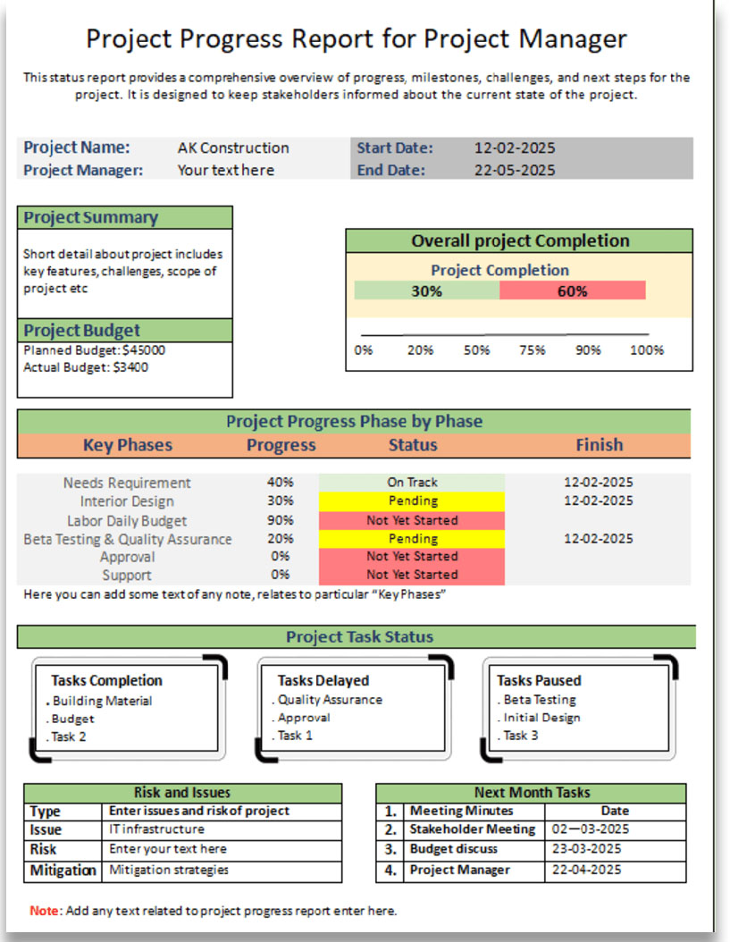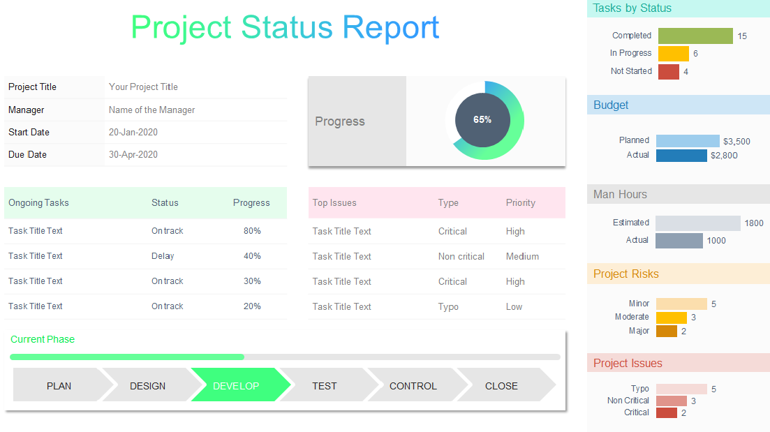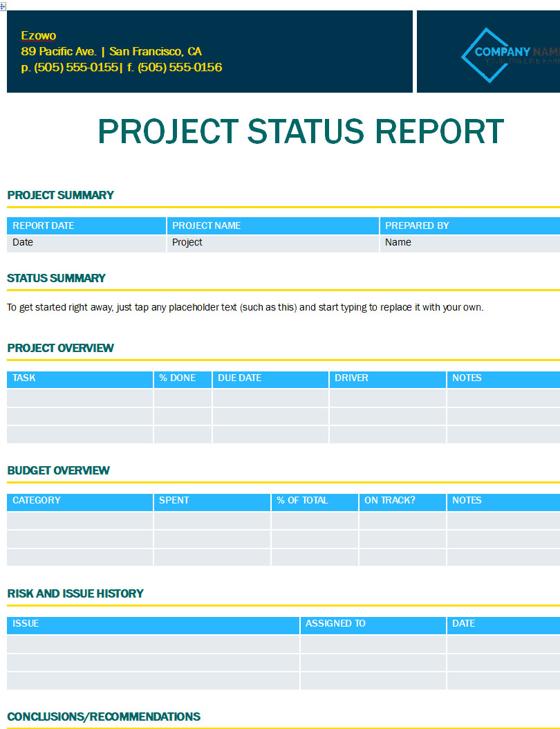 project Status Report for Project Managers Tempalte
