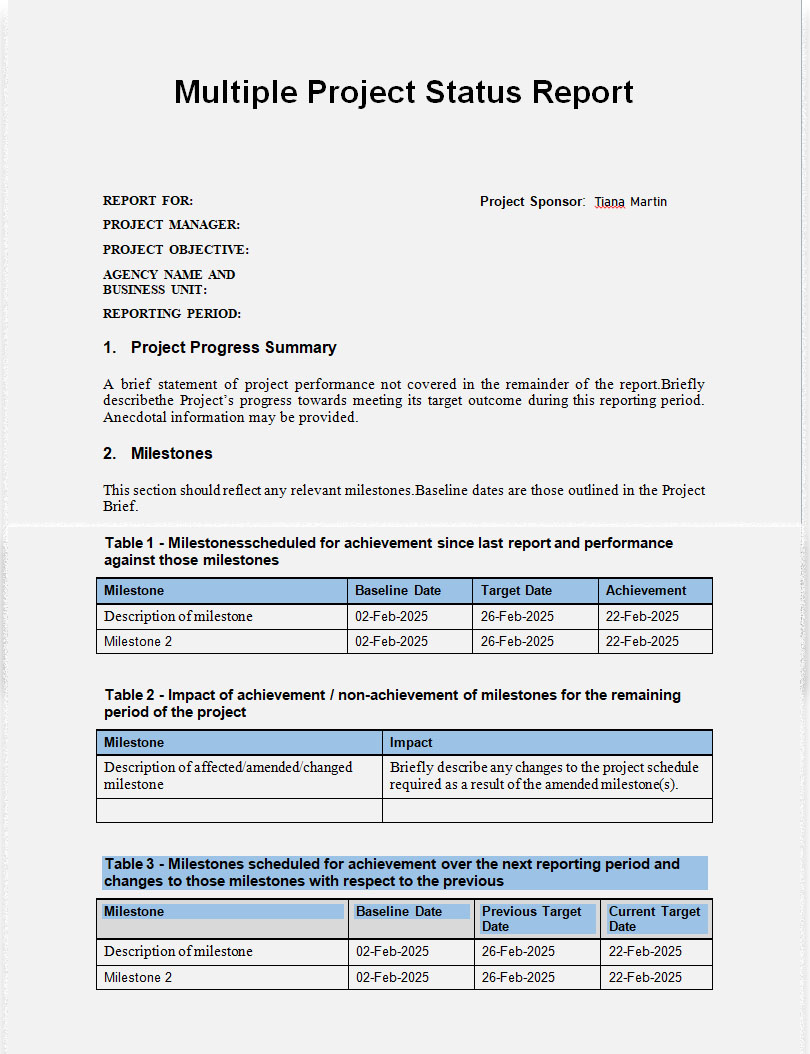 Multiple Project Status Report Template
